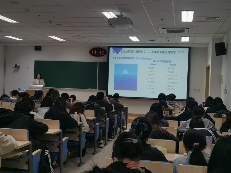 讲座中,郭伟红总监结合多年科技型企业知识产权管理与维权一线经验,系统阐述了商业秘密对企业尤其是高科技制造型企业的战略意义。她指出,商业秘密涵盖技术秘密与经营秘密,是企业的核心竞争力所在,并分析了高科技制造型企业具有研发周期长、技术资料成套、涉密环节多、技术优势生命周期长等特点,强调商业秘密保护是企业生存发展的“必答题”。在核心环节,郭总监通过某科技企业商业秘密侵权维权案例,详细还原了“民刑交叉、以民促刑”的全流程维权路径,重点介绍了诉前证据保全在破解取证难中的关键作用,展示了如何通过“诉前保全固定证据—司法鉴定—刑事追诉”实现对侵权行为的有效打击。讲座结束后,郭伟红总监结合自身行业经验,为同学们介绍了知识产权相关领域的就业情况,详细解读了行业发展趋势和人才需求方向,鼓励有兴趣的同学深耕知识产权领域,发挥专业优势,实现个人价值。